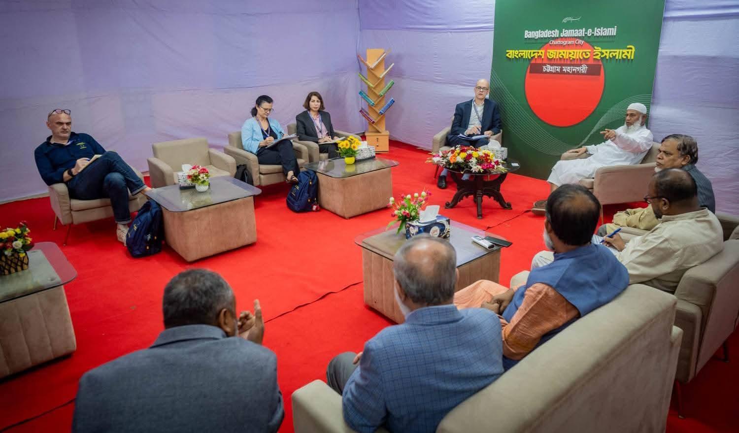 বাংলাদেশ জামায়াতে ইসলামীর চট্টগ্রাম মহানগরী নেতৃবৃন্দের সাথে ইউরোপীয় ইউনিয়নের নির্বাচন পর্যবেক্ষক প্রতিনিধিগণের একটি সৌজন্য সাক্ষাৎ অনুষ্ঠিত হয়েছে। এতে উপস্থিত ছিলেন পলিটিক্যাল এনালিস্ট মার্সেল ন্যাগি, লিগ্যাল এনালিস্ট এরিনি গোউনারি প্রমুখ। তারা চলতি ডিসেম্বরে বাংলাদেশে আগমন করেন জাতীয় সংসদ নির্বাচন ও সংশ্লিষ্ট কার্যক্রম পর্যবেক্ষণের জন্য।